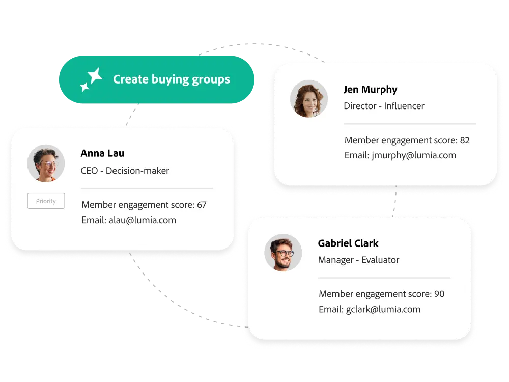 Journey Optimizer B2B Edition은 AI를 기반으로 타겟 계정에서 구매 그룹의 참여를 스마트하게 유도하고