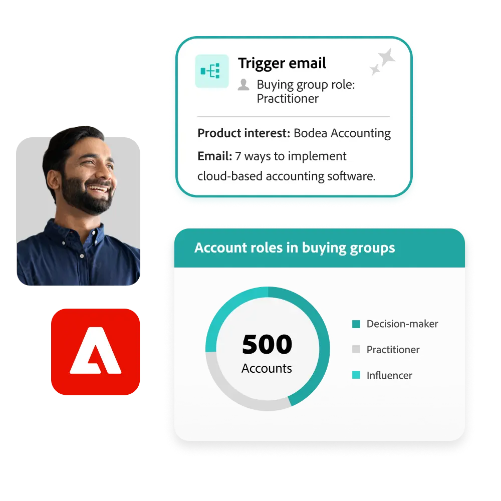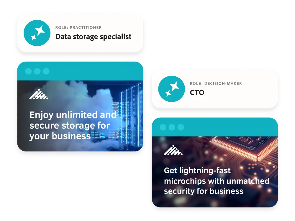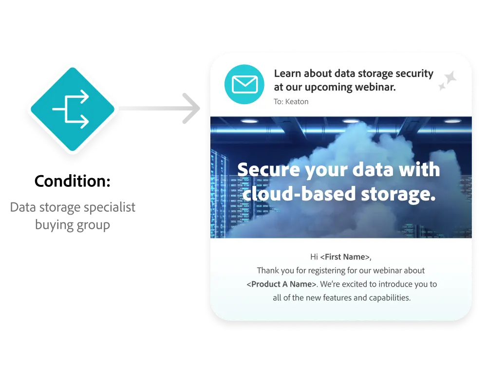 Adobe의 생성형 경험 모델을 사용하면 구매 그룹 내 각 역할의 관심도를 바탕으로 AI 기반의 고유한 이메일 메시지를 생성할 수 있습니다.