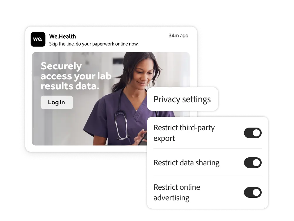 • 알림 및 정책. Journey Optimizer를 통해 시행되는 정책에 따라 사용자가 민감한 데이터를 활성화하지 못하도록 방지하세요. 제품 내 알림을 통해 위반 시도를 팀에 알릴 수 있습니다.