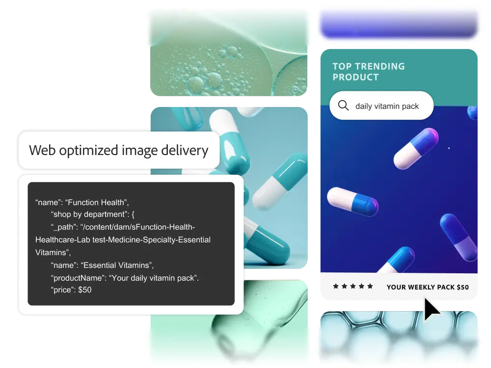 • 웹에 최적화된 이미지 전달. GraphQL을 통해 디지털 에셋 관리자의 이미지를 WebP 포맷으로 전달하여 페이지 로딩 시간을 단축하고 다운로드 크기를 평균 25% 줄일 수 있습니다.