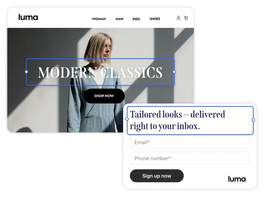 • 양식 재사용. 한 번 제작해 여러 곳에 사용하세요. 재사용 가능한 구성 요소, 템플릿, 스타일을 사용하여 브랜드 일관성을 유지하고 더 빠르게 업데이트할 수 있습니다.